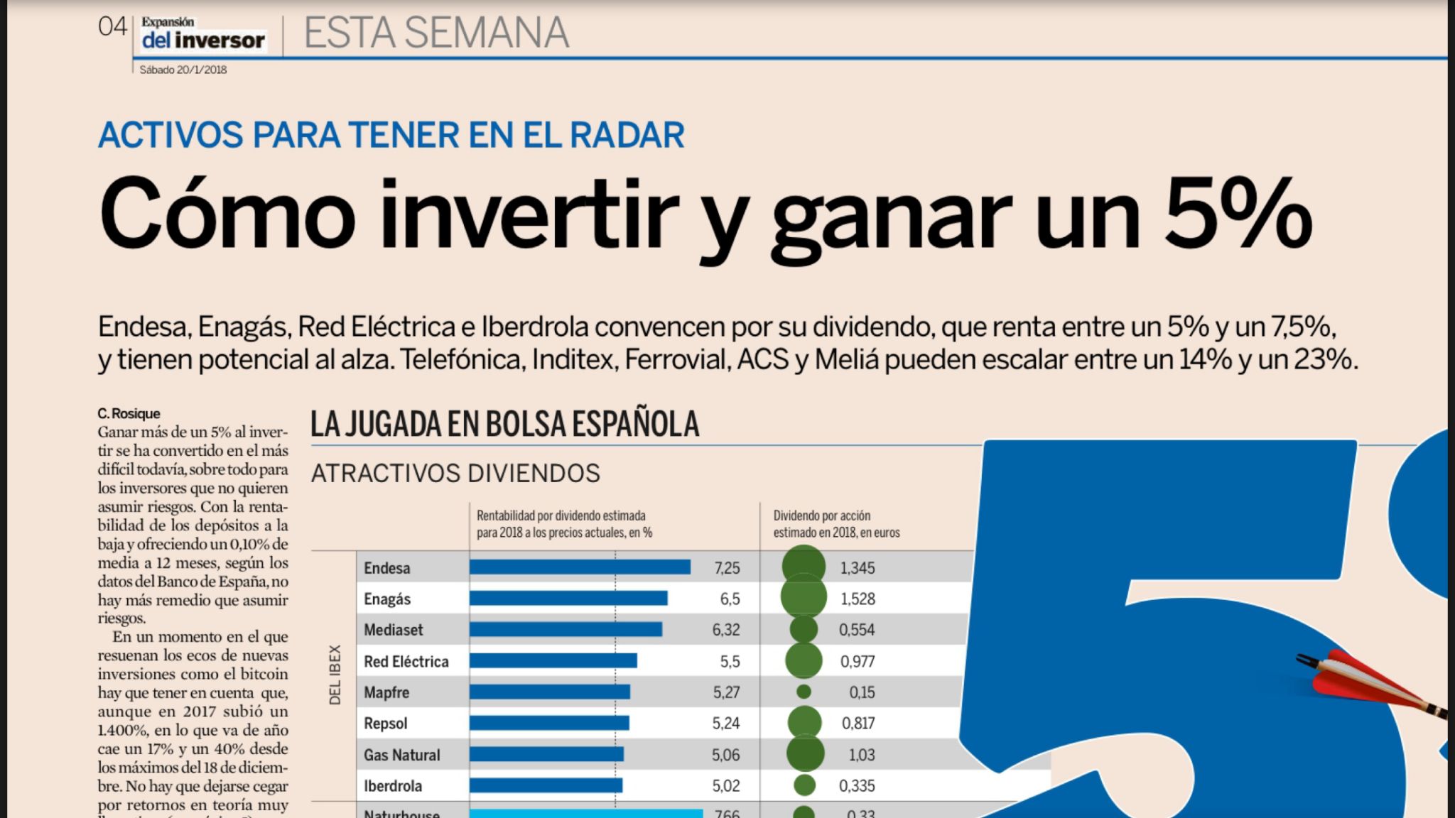 El diario Expansión, con la colaboración de DPM Finanzas, ha publicado un artículos sobre activos que puedan ofrecer retornos de un 5% este año sin asumir grandes riesgos. Como invertir y ganar un 5%